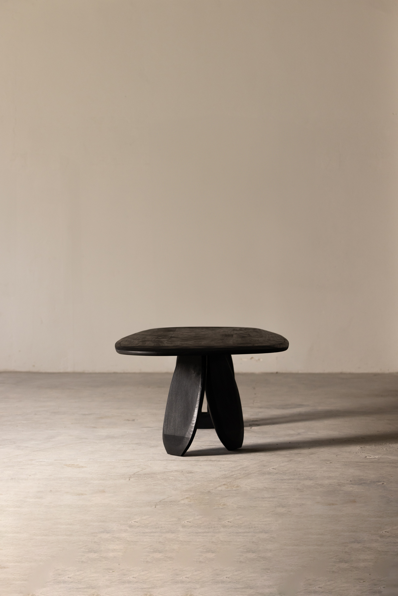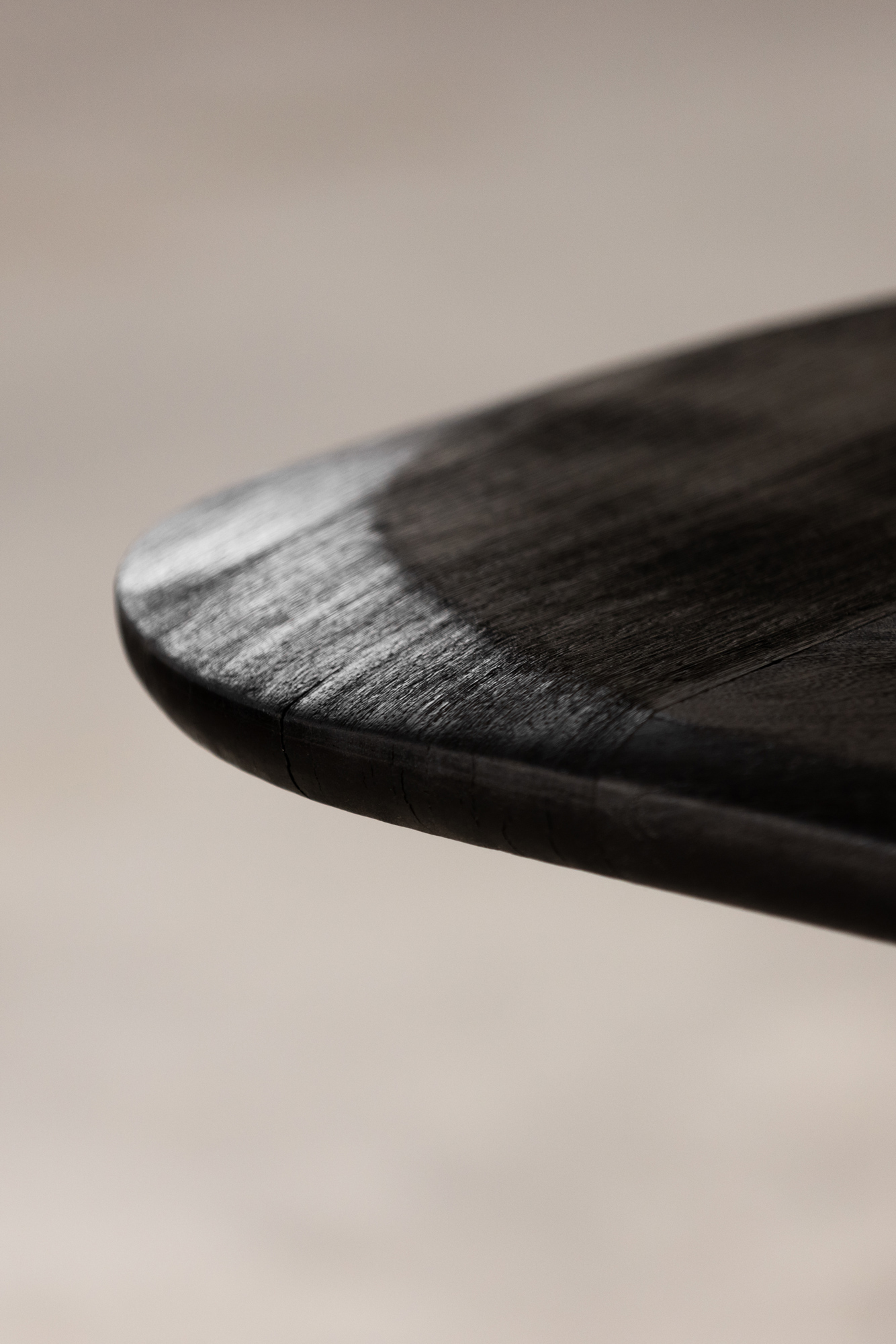 With a very practical approach and sustainable thinking, it came to the idea to use the small scraps to something other than firewood. Even though it may be a good way to end its life, it would be better if it could be appreciated on a surface. With the HELENA table these principles and thoughts were applied. Its intense colours, the hand curved lines, the volume shaped trough serendipity makes this piece what it is. Meant to break the squared-like pattern, the edges were oddly worked to contrast this composition.